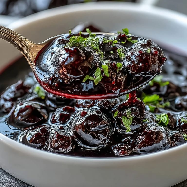 Save to Pinterest One summer afternoon, I was frantically searching for something to rescue a store-bought cheesecake that had turned out disappointingly plain. My neighbor mentioned she'd been making black currant sauce, and when she brought over a jar still warm from her kitchen, I understood immediately why it had become her secret weapon. That glossy, jewel-toned drizzle transformed everything it touched, and I've been chasing that magic ever since.