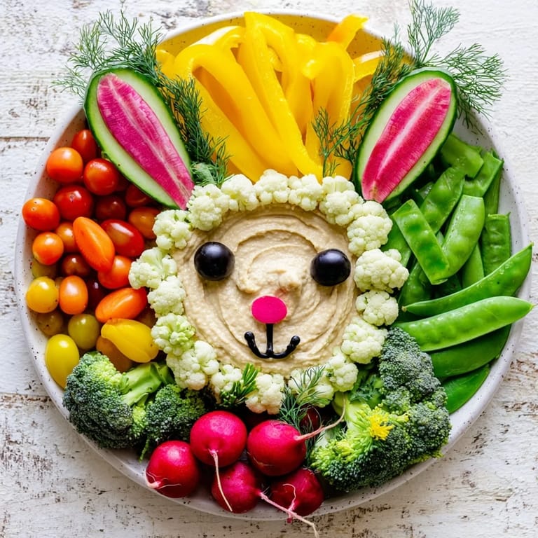 Save to Pinterest A whimsical, spring-inspired vegetable platter arranged to resemble a bunny in a lush meadow—perfect for parties, Easter gatherings, or healthy snacking.