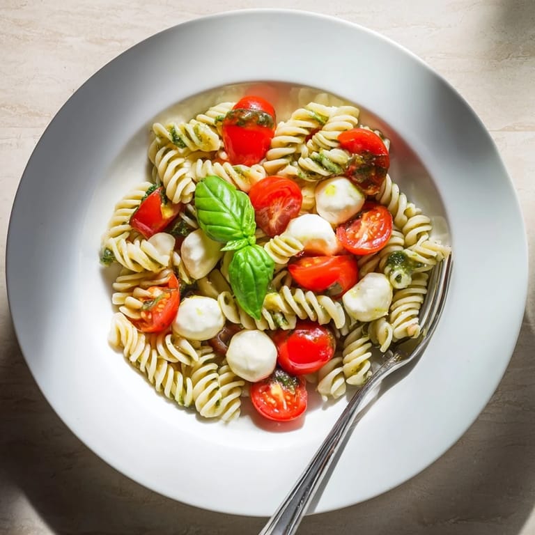 - Short pasta (350 g): Fusilli or penne work beautifully because their shapes catch the olive oil and tiny bits of torn basil, creating flavor in every forkful instead of letting everything slide off.