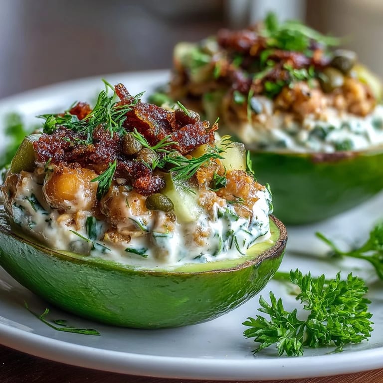 Save to Pinterest Last summer, I was standing in my kitchen on a sweltering afternoon when my neighbor dropped off a bag of avocados from her tree. I had chickpeas in the pantry and wanted something quick that didn't require turning on the stove. That's when it clicked—why not reimagine tuna salad without the tuna? The result was this vibrant, creamy bowl of chickpea salad nestled into perfectly ripe avocado halves, and I haven't looked back since.