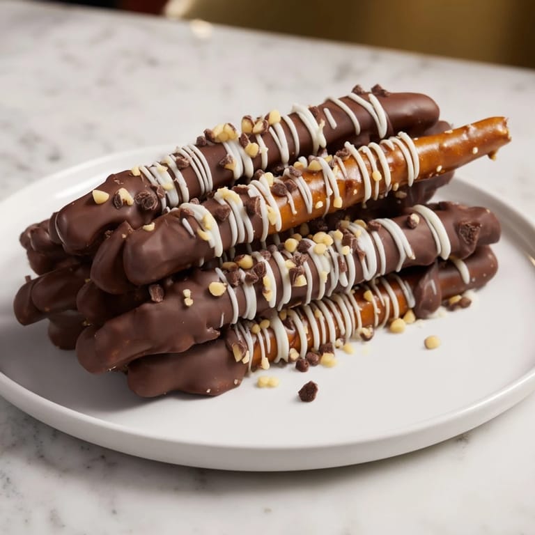 Save to Pinterest A fun, no-bake dessert featuring layers of crunchy pretzel sticks and smooth chocolate, perfect for parties or a quick sweet treat.