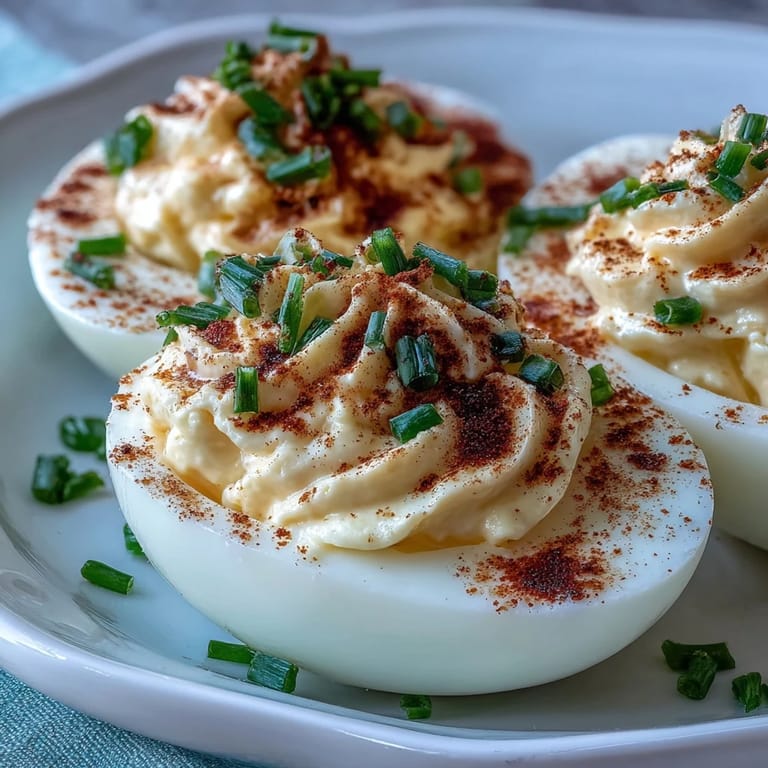 Save to Pinterest The scent of boiled eggs always takes me back to last year's block party, when I whipped up a tray of deviled eggs as an afterthought—and they vanished before I could set them down. Something about mixing creamy yolk with tangy mustard and scattering fresh chives had me grinning at how quickly that simple combination turned into crowd-pleasing bites. Oddly enough, the paprika's smoky aroma lingered longer than the eggs themselves, drawing neighbors into casual conversations around the table. On that day, I realized that deviled eggs are never just a filler—they invite people to pause and snack together. Making them was a breeze, even with my timer stuttering on the kitchen counter from the previous night's pasta mishap.