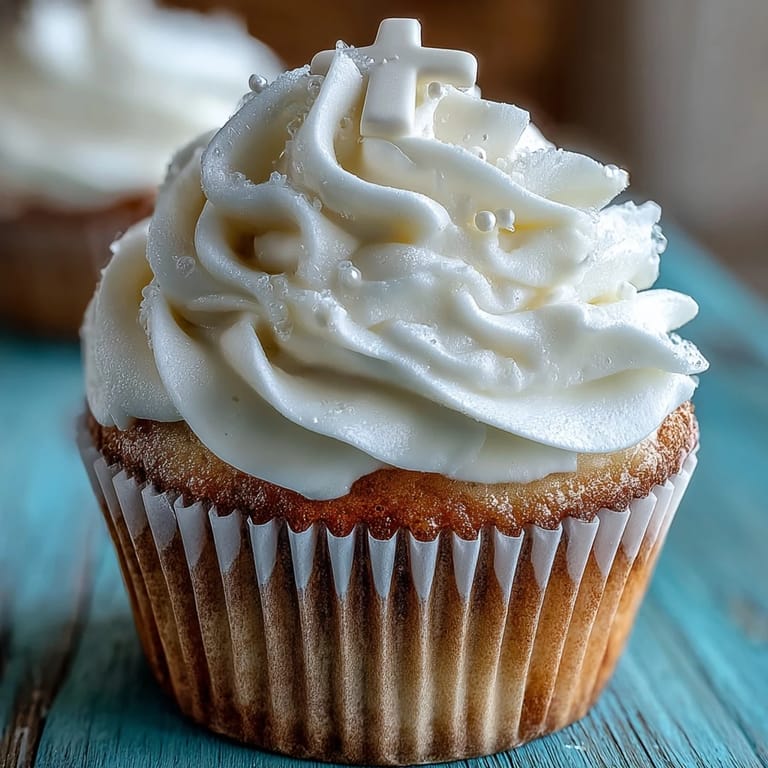 Save to Pinterest Later that afternoon, as everyone gathered around the table, I watched my niece's smile bloom when she realized her name was piped onto her cupcake. That's when it struck me that sometimes small touches—like a delicate fondant cross—turn a sweet treat into a cherished memory.