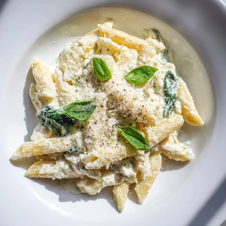 Save to Pinterest A comforting pasta dish featuring a creamy, protein-rich cottage cheese sauce blended with fresh spinach and garlic, perfect for a wholesome weeknight meal.