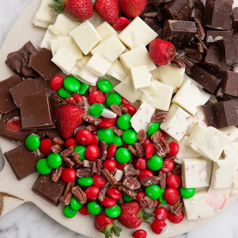 - Chocolates: 100 g milk chocolate squares, 100 g dark chocolate truffles, 50 g white chocolate bark broken into pieces
