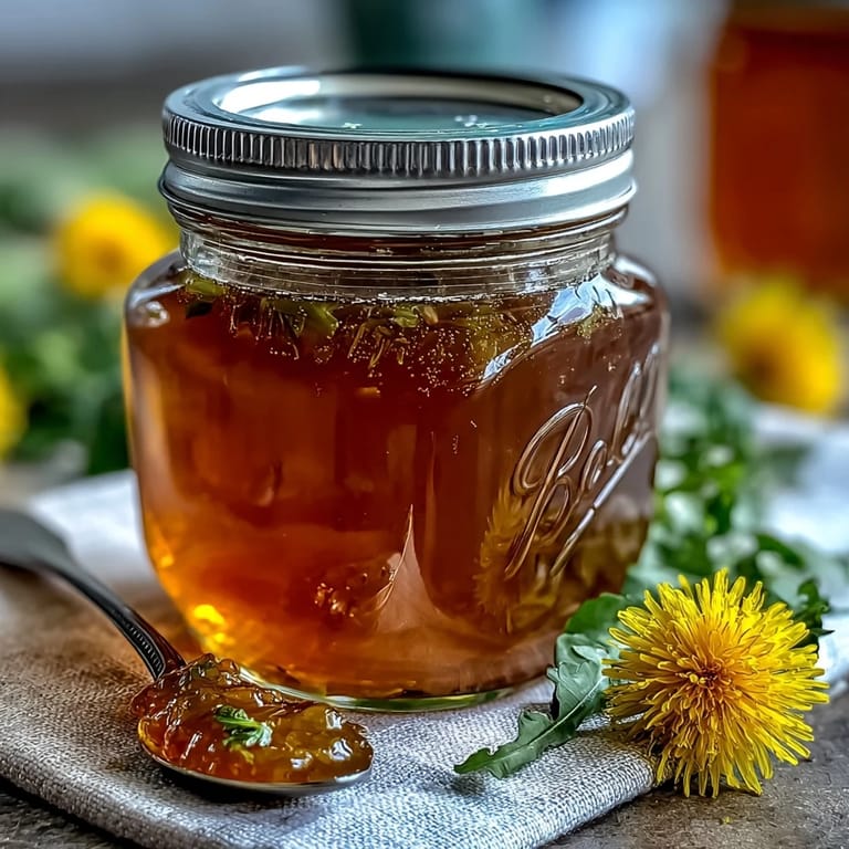Save to Pinterest Dandelion jelly is a delicate, floral preserve that beautifully captures the essence of spring. Made from foraged dandelion blossoms, this golden jelly is perfect for spreading over warm toast, flaky scones, or even pairing alongside a selection of cheeses. Its subtle sweetness and gentle flavor make it a unique way to celebrate seasonal ingredients and bring a touch of nature to your kitchen creations.