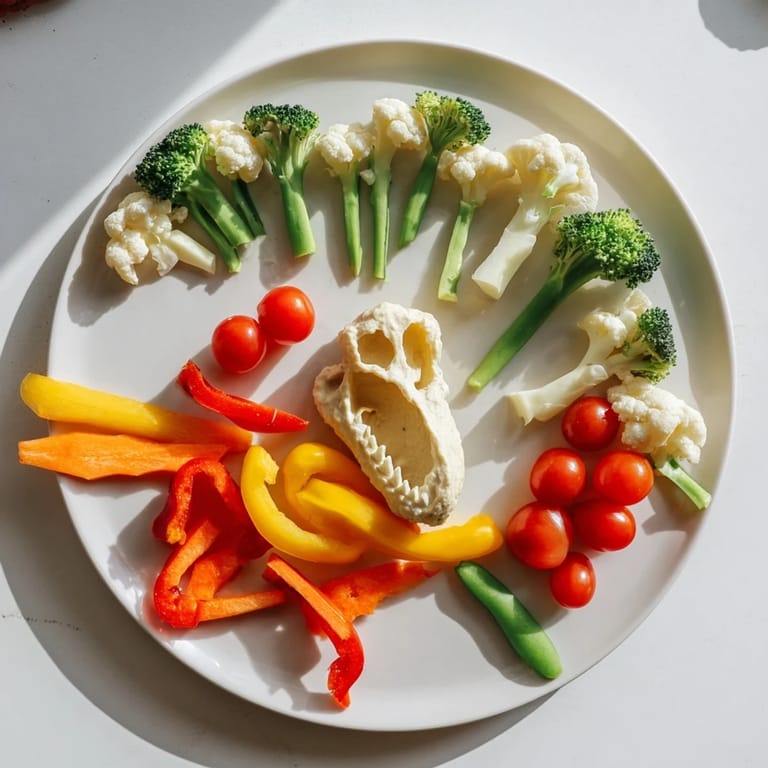 Save to Pinterest A fun and imaginative vegetable platter arranged to look like dinosaur fossils, perfect for kids parties or themed gatherings.
