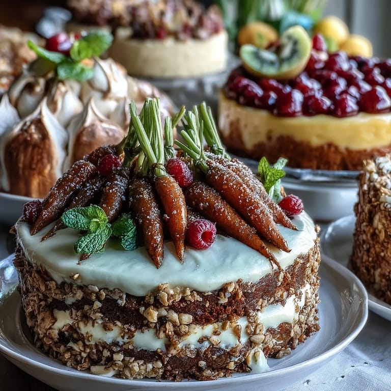 Save to Pinterest The soft scrape of a spatula against a mixing bowl always signals the arrival of spring in my kitchen. When the calendar ticks toward Easter, I find myself assembling what I call my "dessert parade": carrot cake, pavlova, and lemon tart each vying for a place on the table. It's never a quiet affair – the scent of cinnamon mingles with zesty lemon, and airy pavlova clouds float from the oven as I hum along to a playlist that changes every year. Some years, the pavlova collapses right as guests knock at the door and we laugh, salvaging the sugary shards. There's something endlessly joyful about seeing these three desserts side by side, each echoing the season's vibrance.