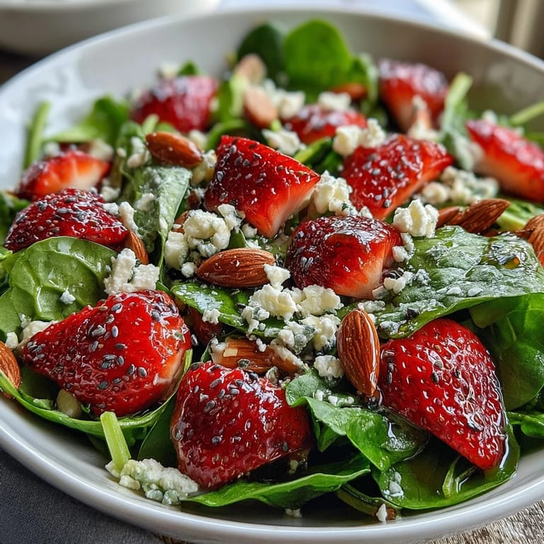 Save to Pinterest Fresh Strawberry Spinach Salad with Poppyseed Dressing is the epitome of spring and summer freshness. This vibrant salad pairs sweet, juicy strawberries with tender baby spinach, tangy feta, and crunchy toasted nuts, all tied together with a luscious, creamy poppyseed dressing. It's a quick and easy dish that brings bold flavors and a delightful texture contrast with every bite, making it perfect for a light lunch or a colorful side at your next gathering.