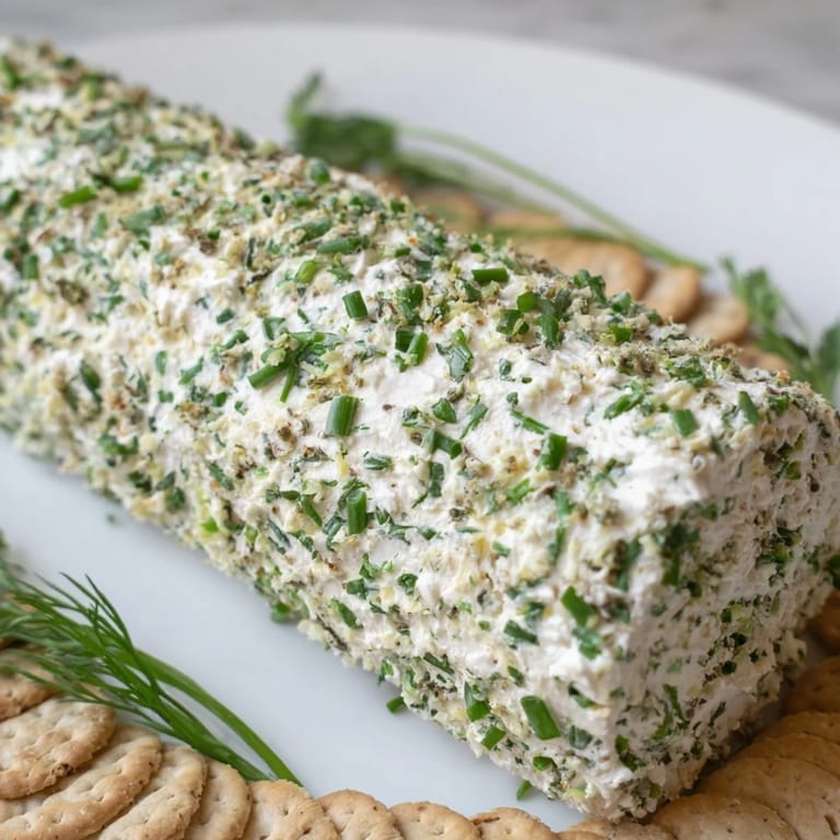 Save to Pinterest A creamy, tangy cheese log coated in fresh herbs, served with a crisp ring of assorted crackers perfect for entertaining or as an elegant appetizer.