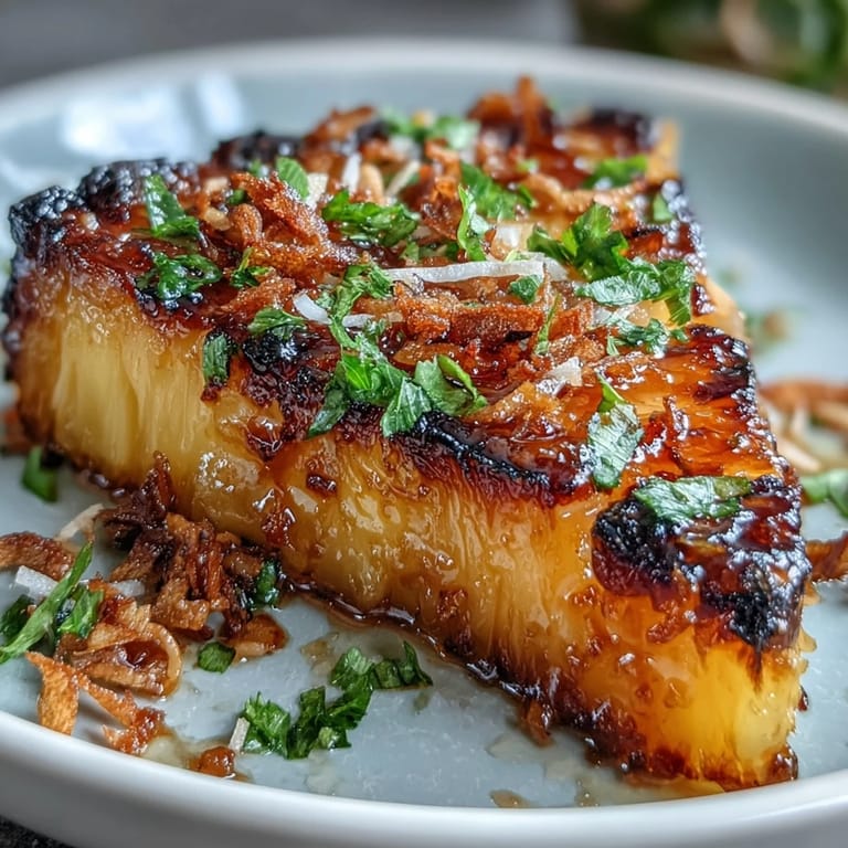 Save to Pinterest There's something about standing in front of an open oven, watching pineapple wedges turn golden and caramelized, that makes you feel like you've uncovered a small kitchen secret. I stumbled onto this recipe on a humid afternoon when my fridge held little more than a tired pineapple and a jar of honey, and somehow those two things transformed into something that tasted like a tropical vacation. The honey-lime glaze creates this beautiful blistering effect on the fruit, and when you add that toasted coconut on top, the whole kitchen fills with this warm, nutty aroma that lingers long after dinner is finished. It's become my go-to when I want something that feels fancy but requires almost no fussing.