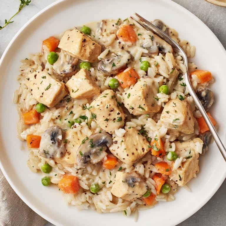 Save to Pinterest A comforting family-friendly dish featuring tender chicken creamy rice and vibrant vegetables all cooked together in a single pot for easy preparation and cleanup