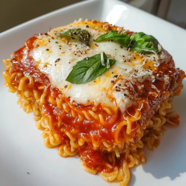 Save to Pinterest My roommate challenged me to make lasagna on a shoestring budget, and I stared at the pantry thinking about those brick-red ramen packages gathering dust. What if I treated them like actual noodle sheets instead of soup? Forty minutes later, golden and bubbling, it was absurd—and absolutely delicious. Now this fusion of comfort food and resourcefulness is my go-to when I want something that feels indulgent without the fuss.