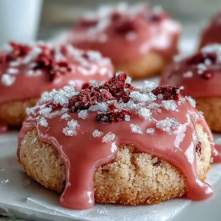 Save to Pinterest I discovered these strawberry sugar cookies on a whim last spring when my neighbor showed up at my door with a basket of freeze-dried strawberries from her garden. She mentioned offhand that they'd be perfect in cookies, and something about the way the afternoon light caught the pink-dusted berries made me want to drop everything and bake. The result was softer and more delicate than I expected, with that subtle strawberry tang balanced by sweetness. Now they're what I reach for whenever someone asks for something special that feels both fancy and deeply homemade.