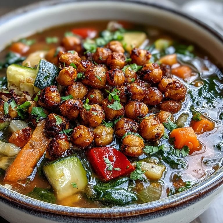 Save to Pinterest There's something about the smell of cumin hitting a hot pan that makes me pause whatever I'm doing. Years ago, a friend who'd lived in Morocco brought over spices I'd never touched before, and we threw together this soup on a grey afternoon when neither of us felt like ordering takeout. The chickpeas roasting in the oven turned golden and crispy while we chopped vegetables and talked, and by the time everything came together, the kitchen had transformed into this warm, aromatic space that felt nothing like a regular weeknight dinner.