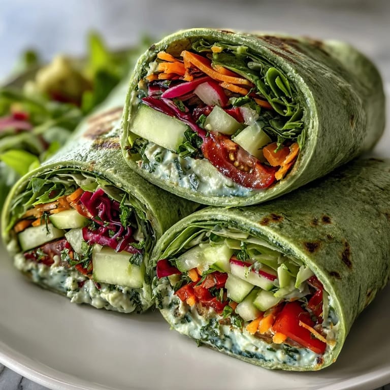 Save to Pinterest Last spring, I was rushing to pack lunch for a hiking trip and realized I had exactly twenty minutes before we needed to leave. My kitchen counter was a riot of fresh vegetables I'd bought at the farmer's market that morning, and instead of panicking, something clicked—why not turn all this color into something portable and bright? Those first wraps were so crisp and satisfying that my friends asked for the recipe before we'd even reached the trailhead. Now whenever I need a meal that feels both nourishing and celebratory, these spinach wraps are my first instinct.