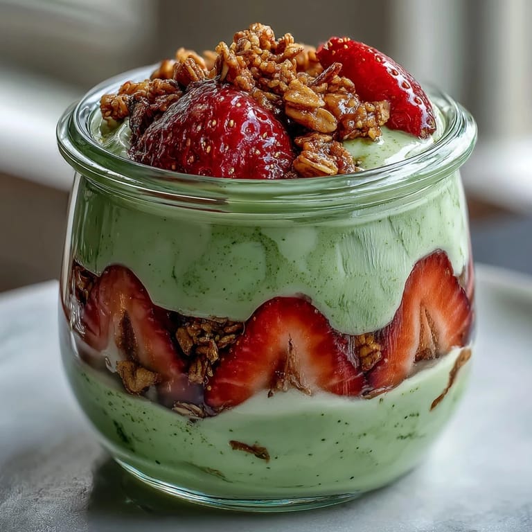 Save to Pinterest Last Tuesday morning, my neighbor stopped by with a box of strawberries from her garden, and I was honestly at a loss—too many for jam, not quite enough for a dessert. But then I remembered a matcha latte I'd been meaning to use up, and something clicked. Within minutes, I'd layered the creamy green yogurt with those bright berries and granola, and suddenly breakfast felt like a tiny celebration in a glass. Now I make these whenever I need a moment that tastes as good as it looks.