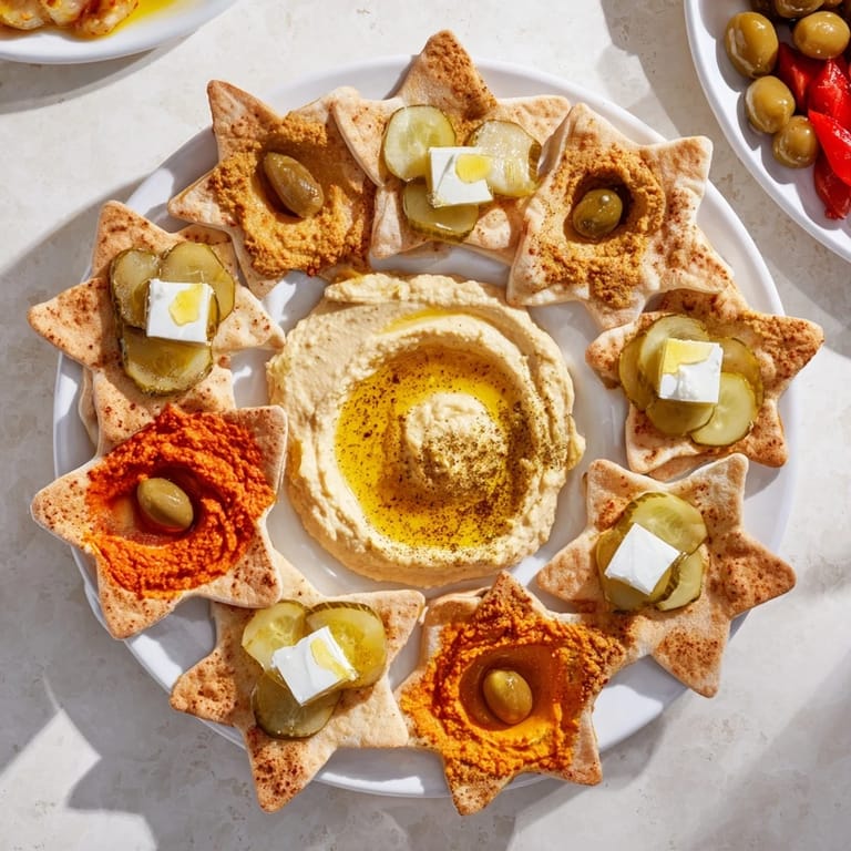 Save to Pinterest A vibrant mezze platter inspired by the Three Kings tradition, featuring star-shaped pita, colorful dips, and Mediterranean delights perfect for sharing at festive gatherings.