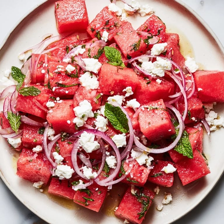 Save to Pinterest Last summer, I was caught off guard by a heat wave that made cooking feel impossible, and I found myself standing in front of an open refrigerator just hoping something would inspire me. That's when I spotted a perfectly ripe watermelon I'd grabbed on a whim at the farmers market, and the memory of my friend Maria's kitchen in Athens hit me—where she'd casually tossed watermelon with feta and mint like it was the most obvious thing in the world. I made it that night, and suddenly dinner didn't feel like a chore anymore.